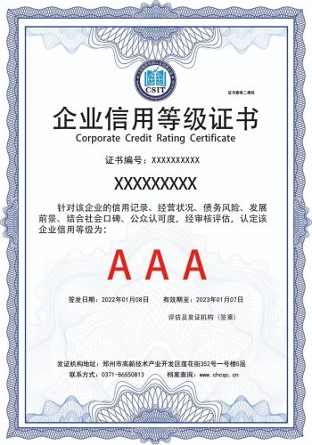 另外,信用等级证书我国采用的是国际通行的“四等十级制”评级等级,具体等级分为:AAA,AA,A,BBB,BB,B,CCC,CC,C,D。其中AAA级是高等级,D级。信用等级越高表明企业信用程度越高,经营状况、盈利水平越好,履约能力、偿债能力越强。