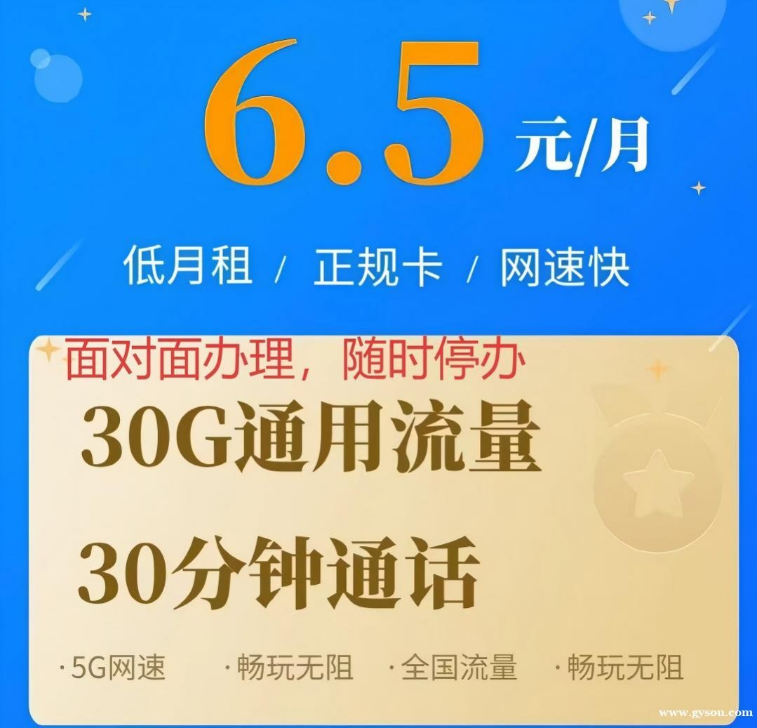 6.5元包含60G全国流量+30分钟通话联系我时请说明是在巩义搜门户网看到的,谢谢!